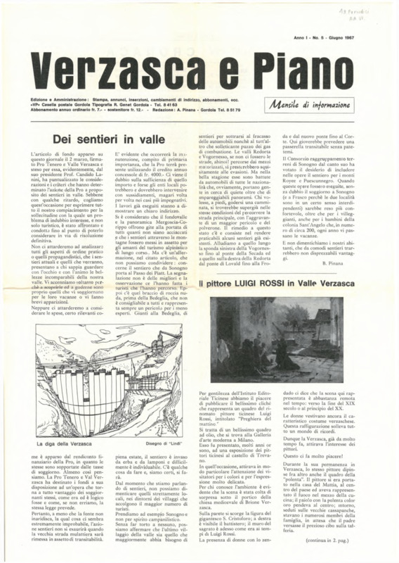 Verzasca e Piano : mensile di informazione, anno I, n. 05, giugno 1967