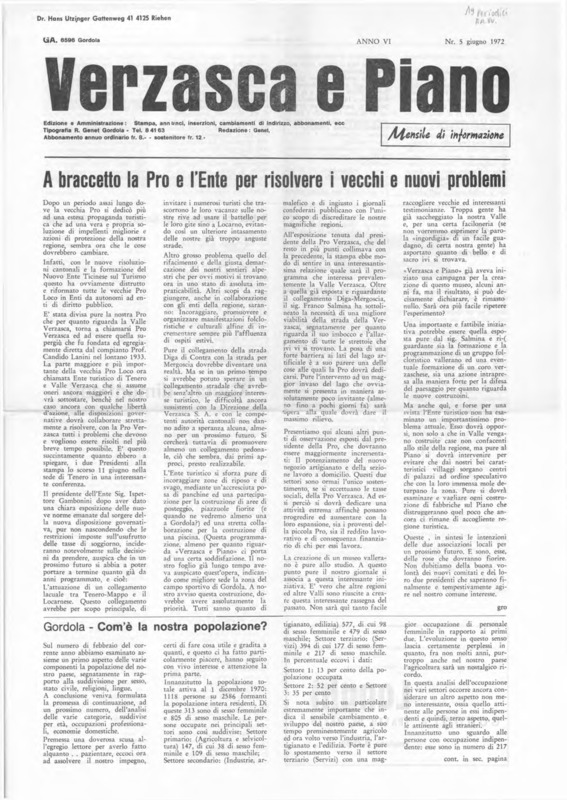 Verzasca e Piano : mensile di informazione, anno VI, n. 05, giugno 1972