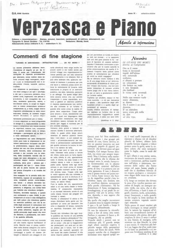 Verzasca e Piano : mensile di informazione, anno IV, n. 09, settembre ottobre 1970