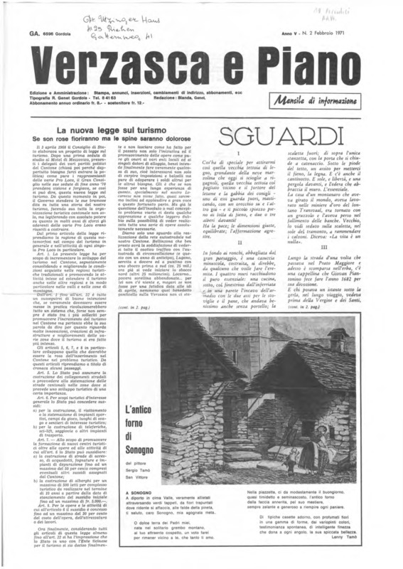 Verzasca e Piano : mensile di informazione, anno V, n. 02, febbraio 1971