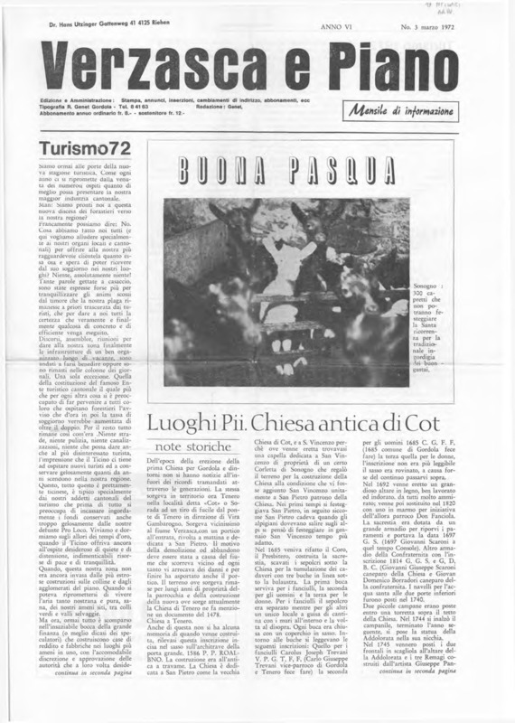Verzasca e Piano : mensile di informazione, anno VI, n. 03, marzo 1972