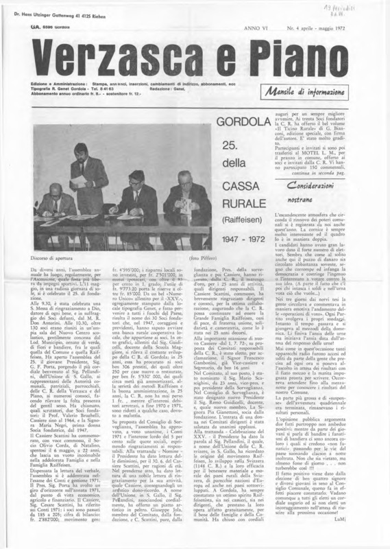 Verzasca e Piano : mensile di informazione, anno VI, n. 04, aprile maggio 1972