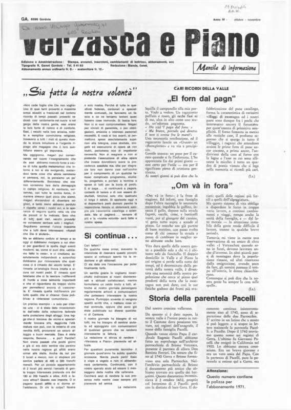Verzasca e Piano : mensile di informazione, anno V, n. 10, dicembre 1971