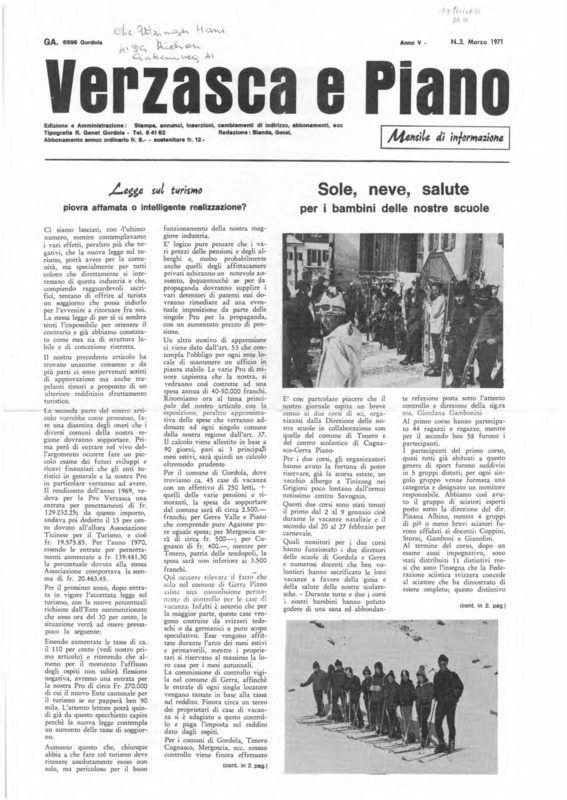 Verzasca e Piano : mensile di informazione, anno V, n. 03, marzo 1971
