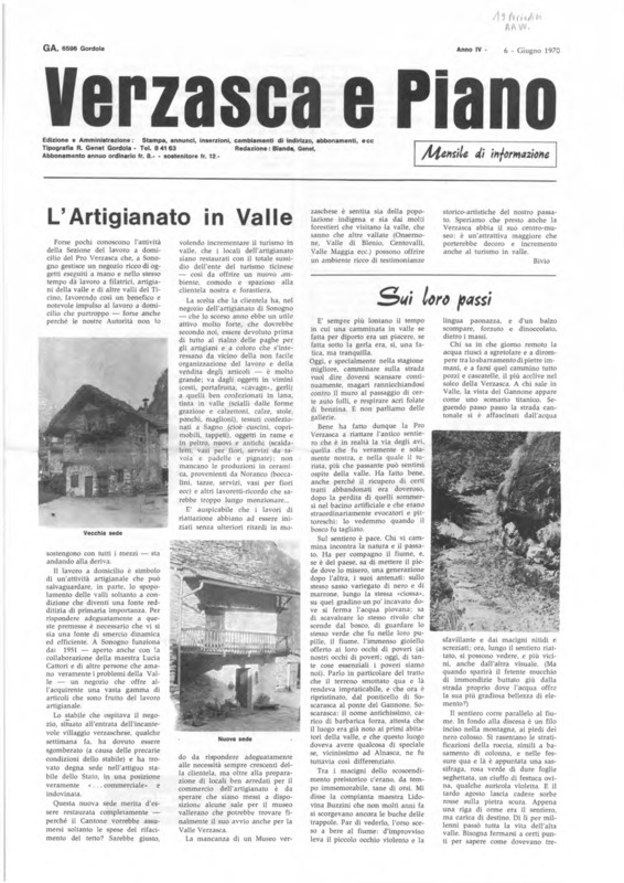 Verzasca e Piano : mensile di informazione, anno IV, n. 06, giugno1970