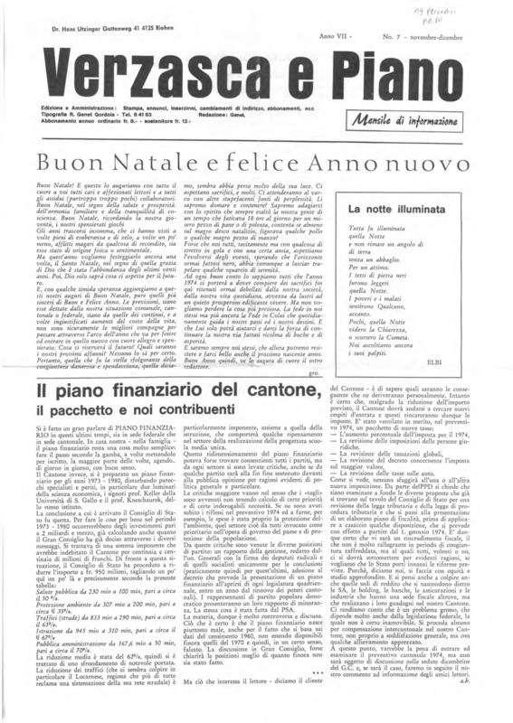 Verzasca e Piano : mensile di informazione, anno VII, n. 07, novembre dicembre 1973