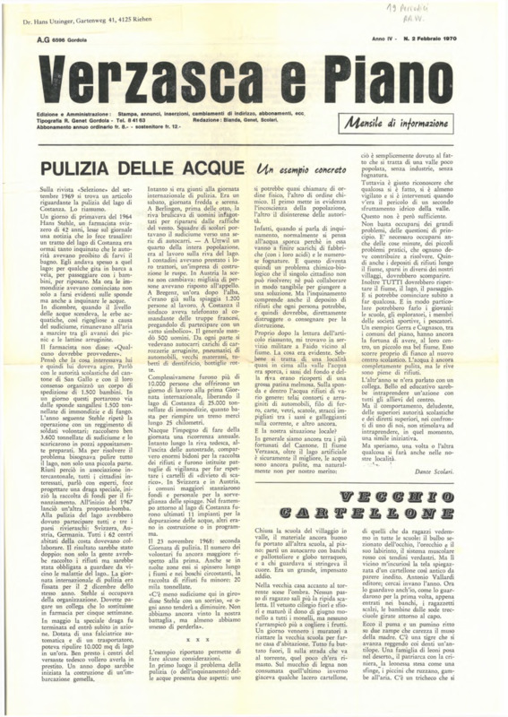 Verzasca e Piano : mensile di informazione, anno IV, n. 02, febbraio 1970