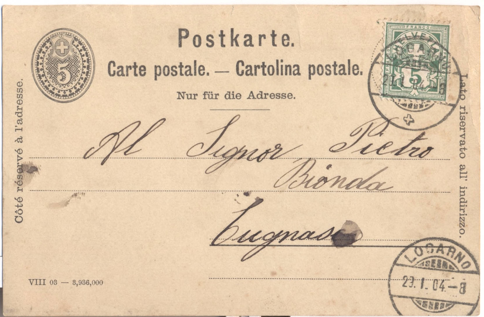 Al Signor Pietro Bionda Cugnasco