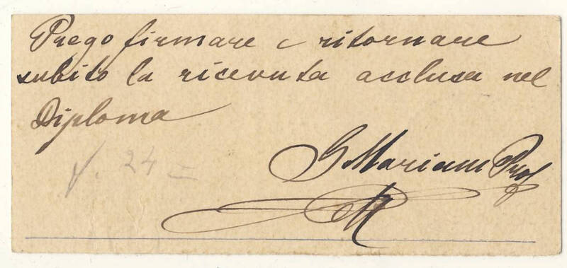 Prego firmare e ritornare subito la ricevuta acclusa nel diploma