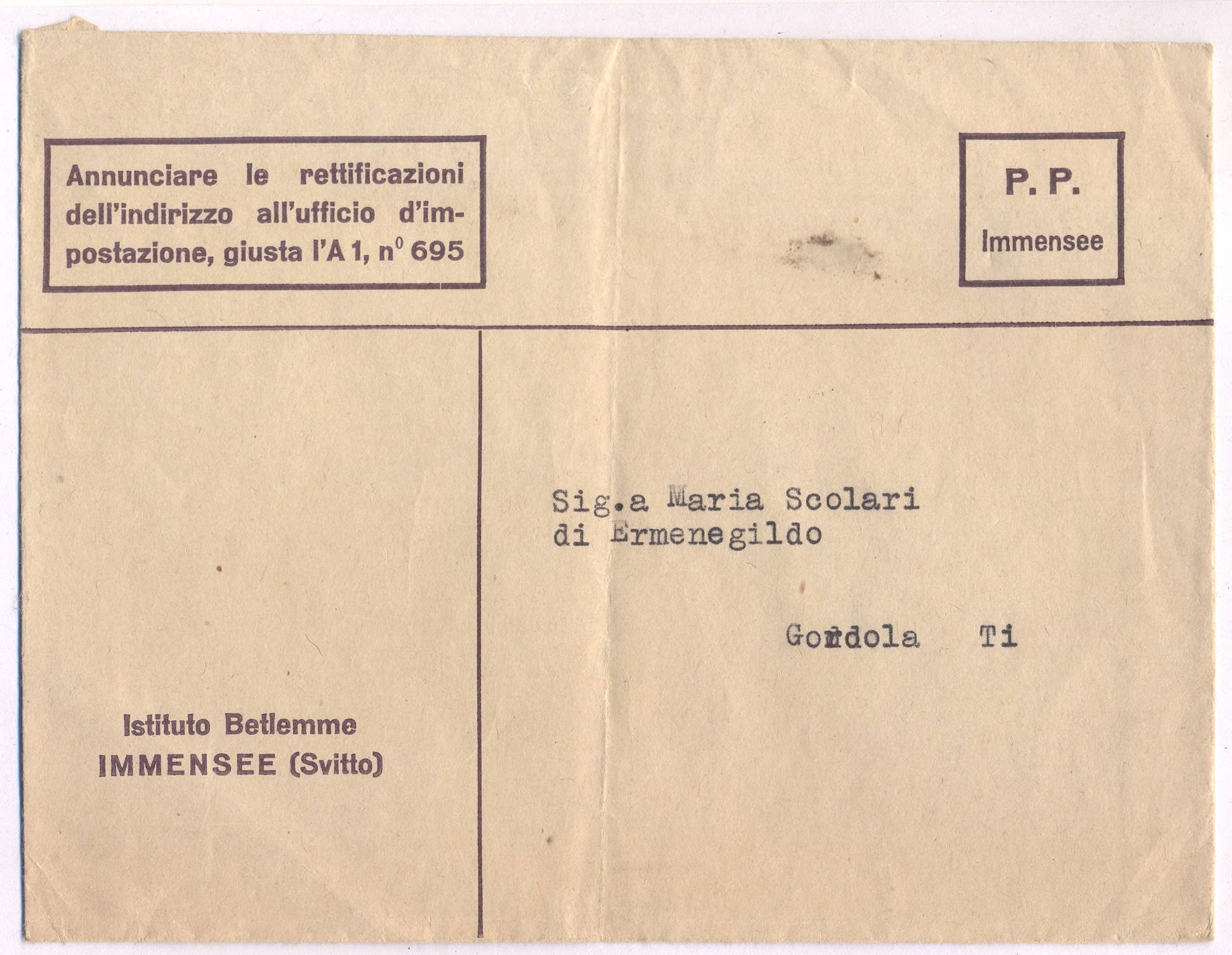 Busta vuota. Sul retro la brutta copia di convocazione dell'assemblea dei compadroni dell'Alpe Giove