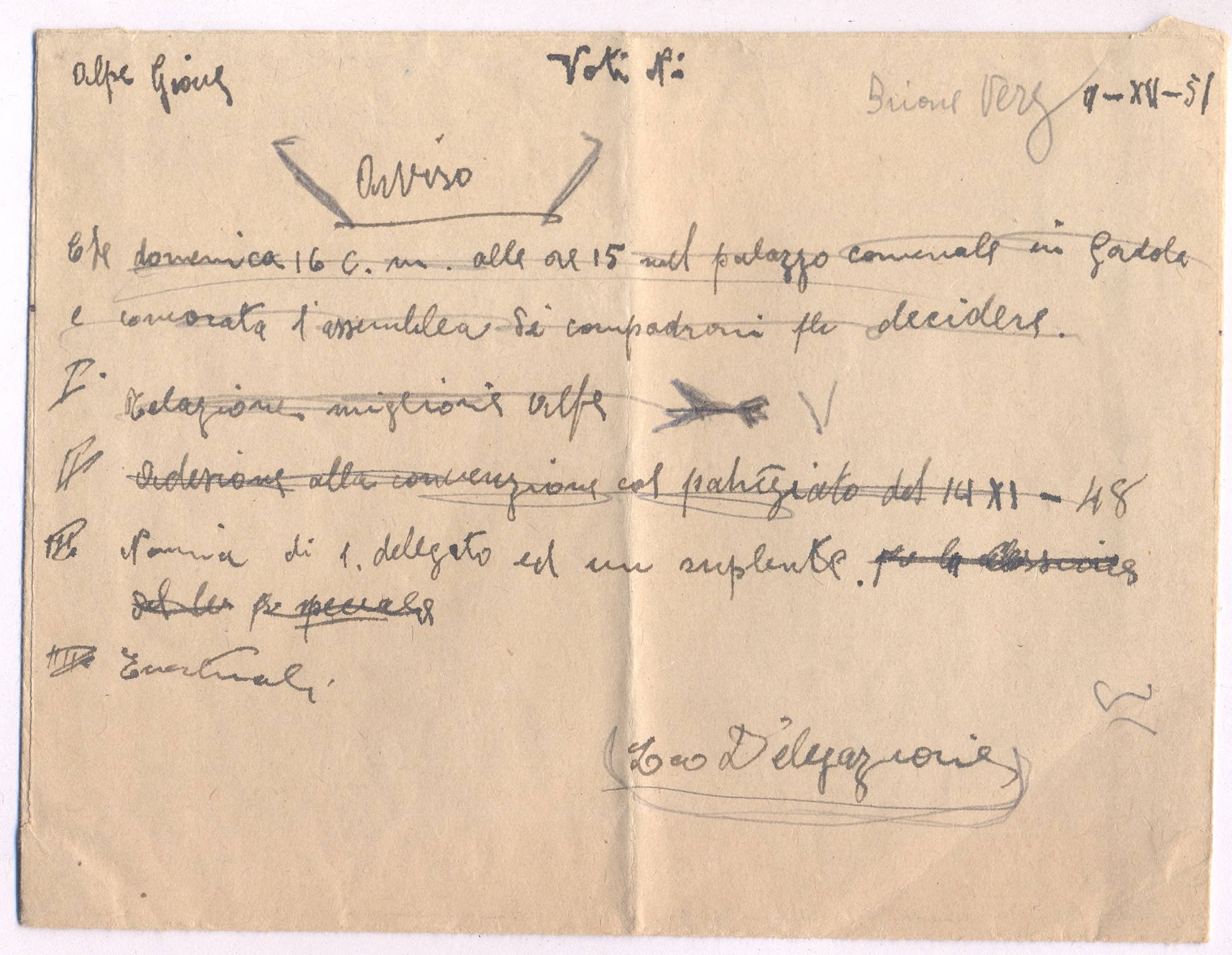 III. Nomina di 1. delegato ed un supplente.