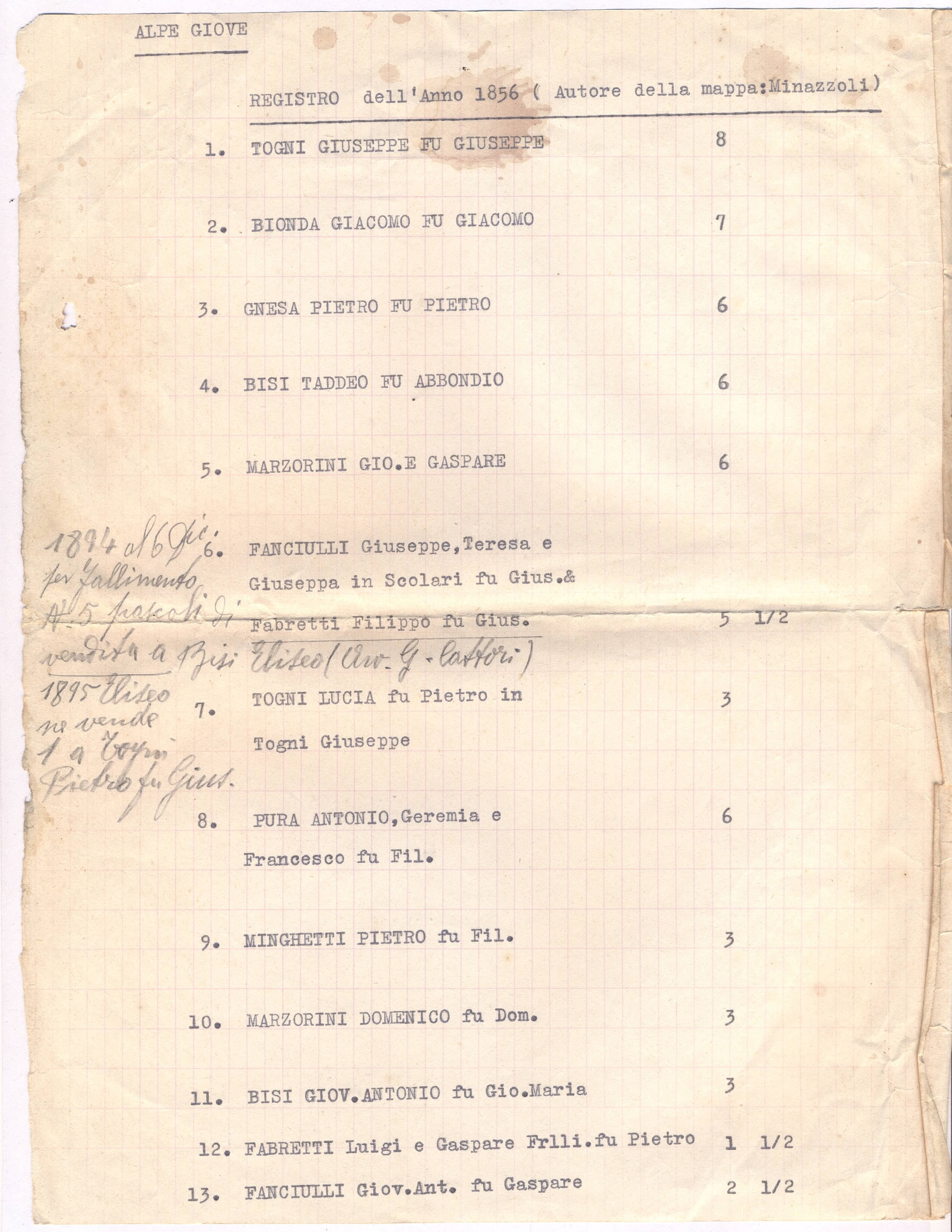 REGISTRO dell'Anno 1856 (Autore della mappa: Minazzoli)