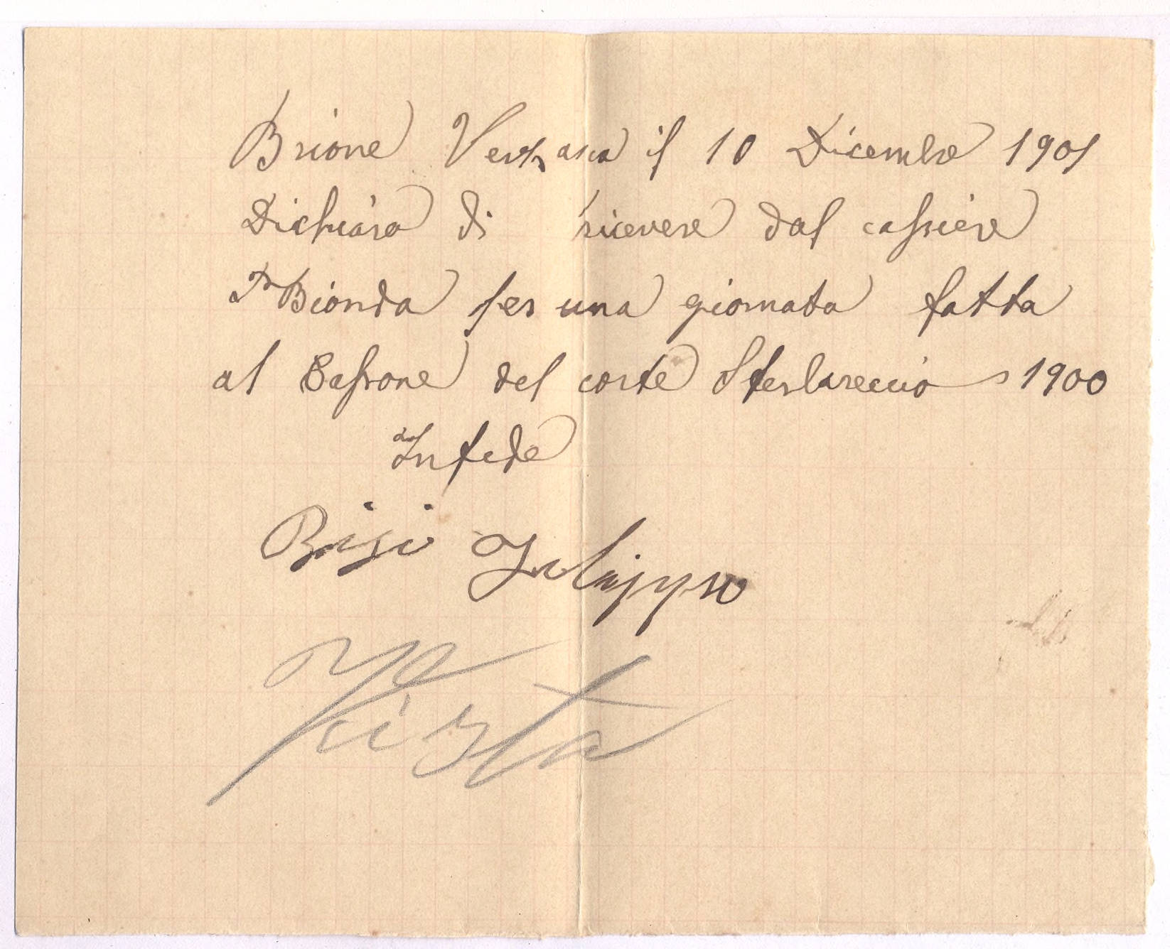 Dichiaro di ricevere dal cassiere Bionda per una giornata fatta al Casone del corte Starlareccio