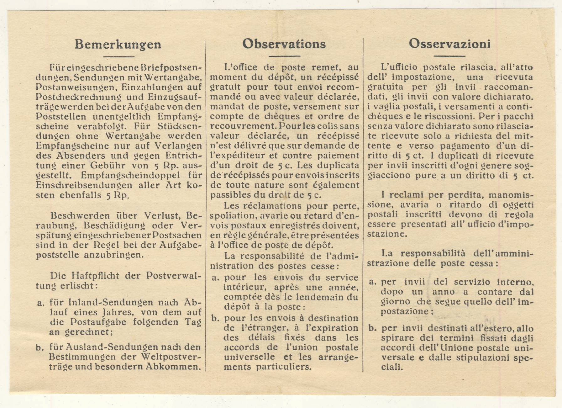Ricevuta per raccomandata a Rocco Bisi