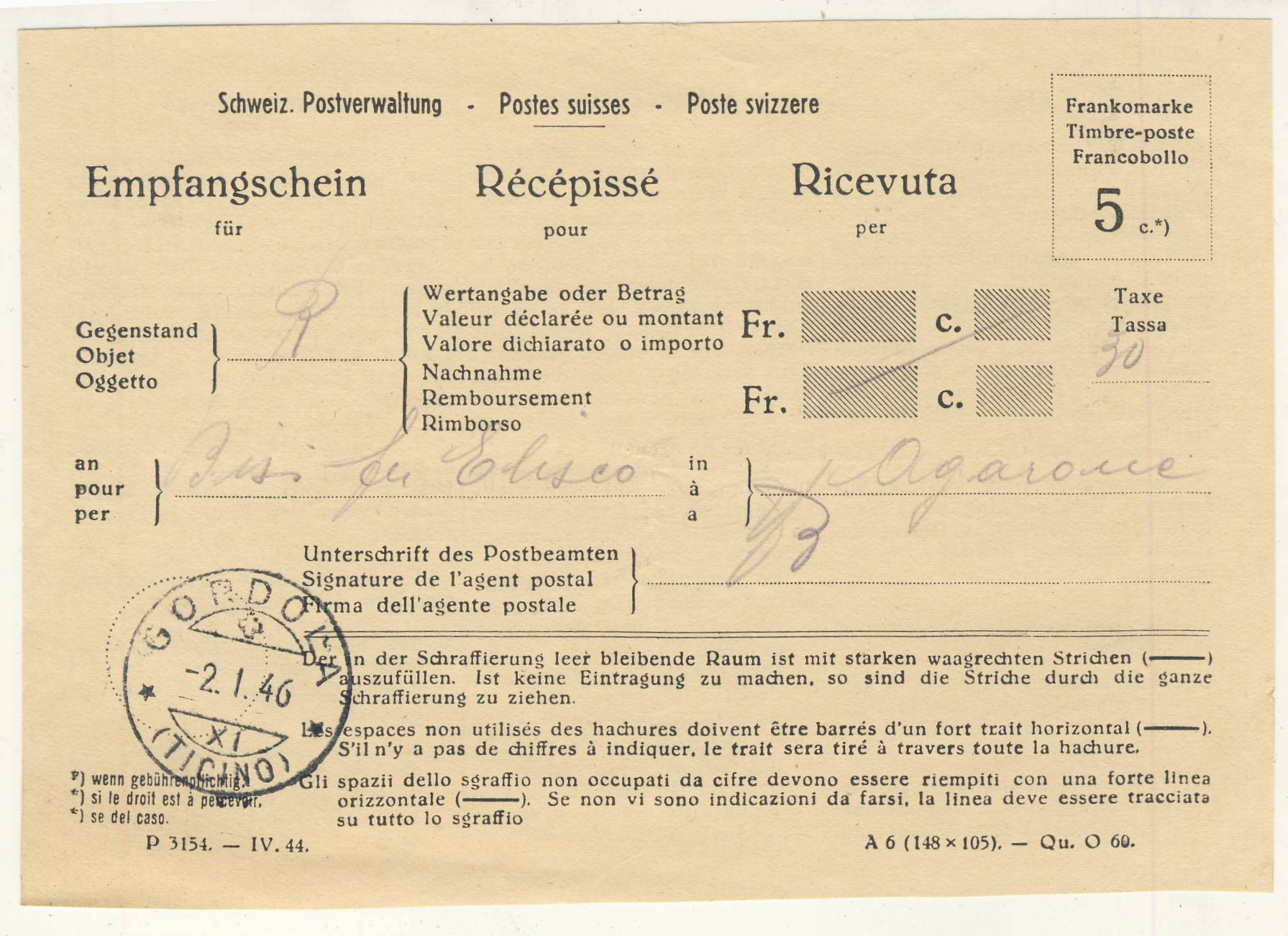 - Ricevuta per raccomandata a Bisi fu Eliseo