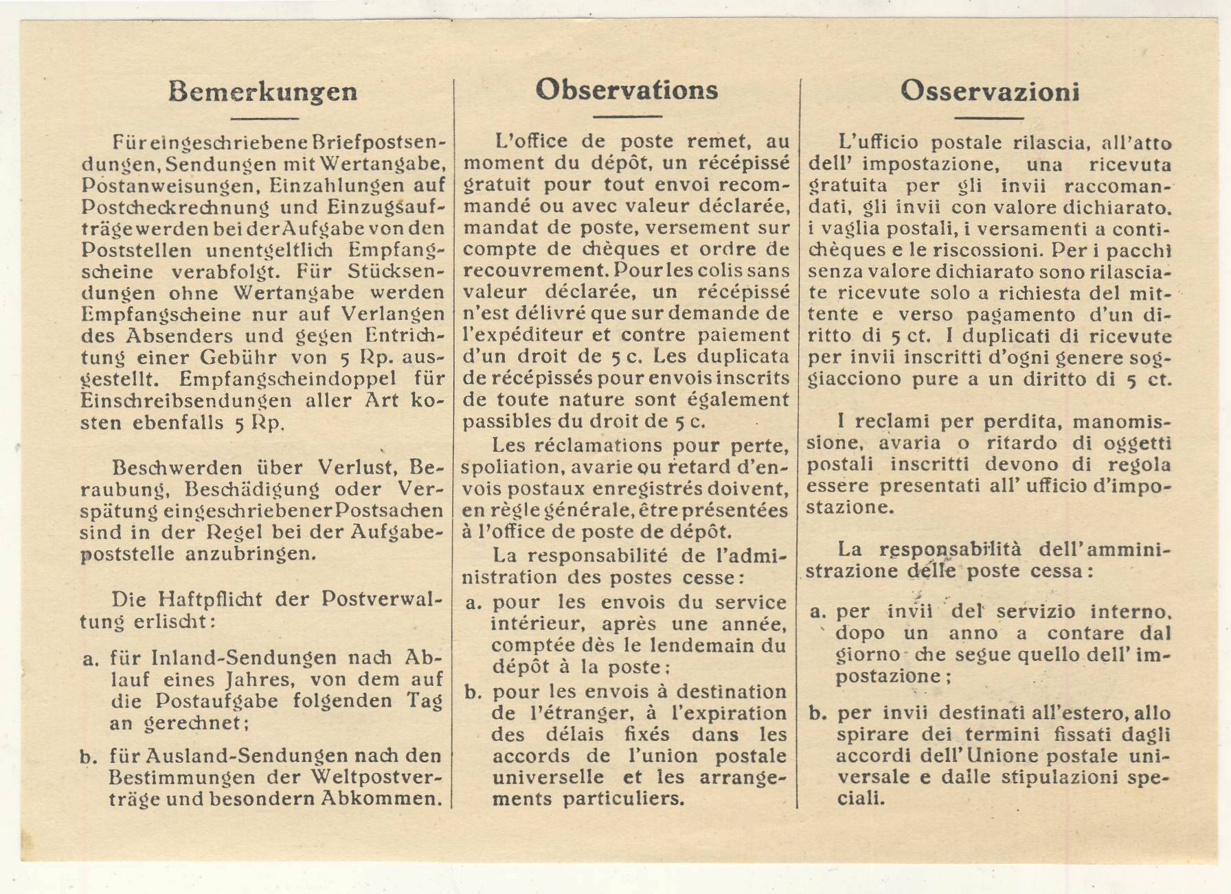 Ricevuta per raccomandata a Bisi fu Eliseo