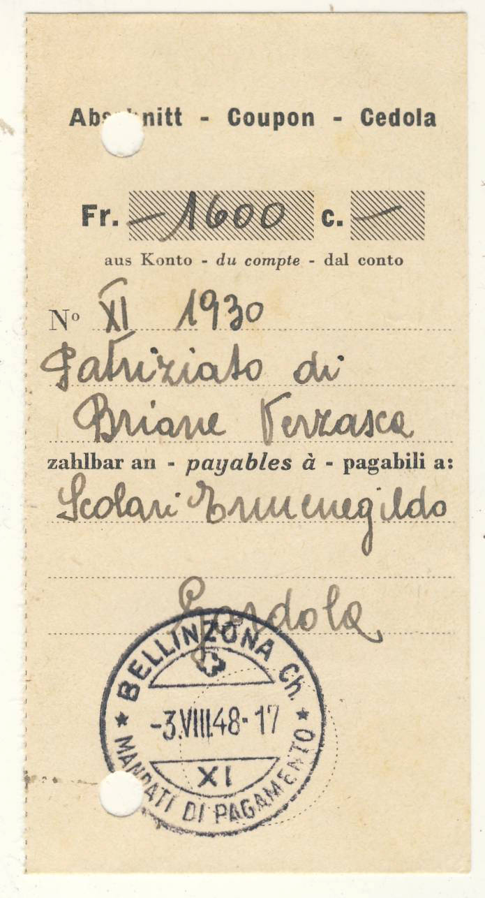 [timbro] Bellinzona 3.VIII.48 mandato di pagamento