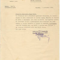 In relazione alle precedenti pratiche intercorse, vi comunichiamo di aver incaricato il nostro capom. Manetti di fornirvi tutti i ragguagli del caso in merito all'oggetto citato. Vi invitiamo quindi a presenziare alla riunione che sarà tenuta in Brione Verzasca il giorno di martedì 6 settembre 1949 con ritrovo alle ore 08,51 ( arrivo auto postale ).