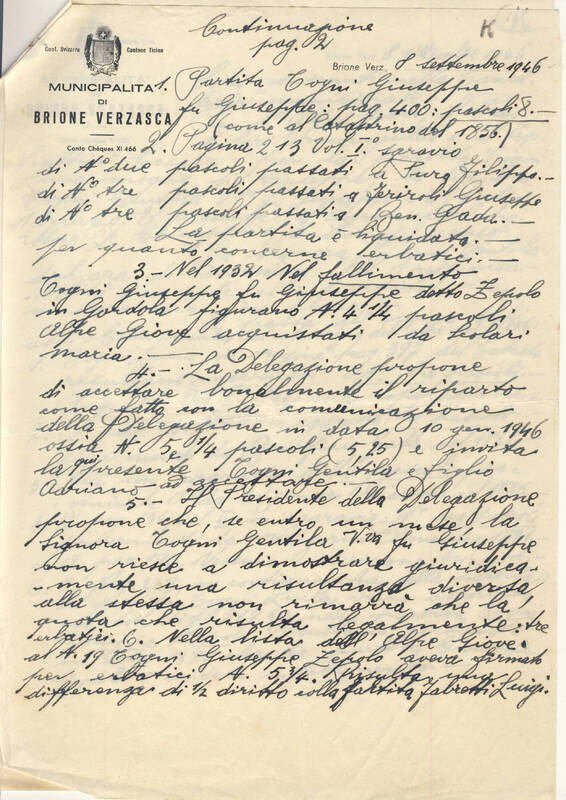 3. Nel 932 Nel fallimento Togni Giuseppe fu Giuseppe detto Zepolo in Gordola figurano N°. 4¼ pascoli Alpe Giove acquistati da Scolari Maria.-