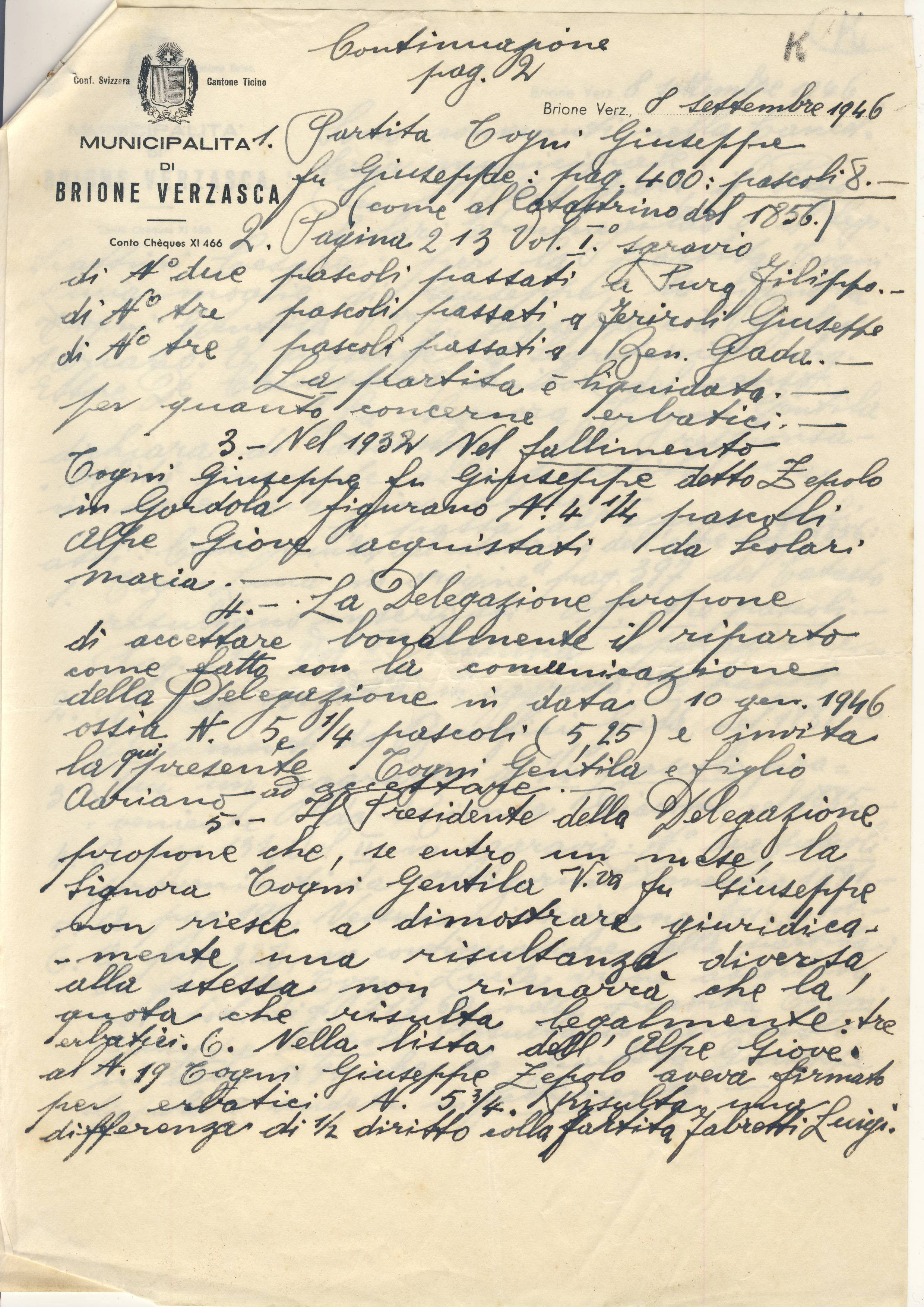 6. Nella lista dell'Alpe Giove al N. 19 Togni Giuseppe Zepolo aveva firmato per erbatici 5 ¾. Risulta una differenza di ½ diritto colla partita Fabretti Luigi.