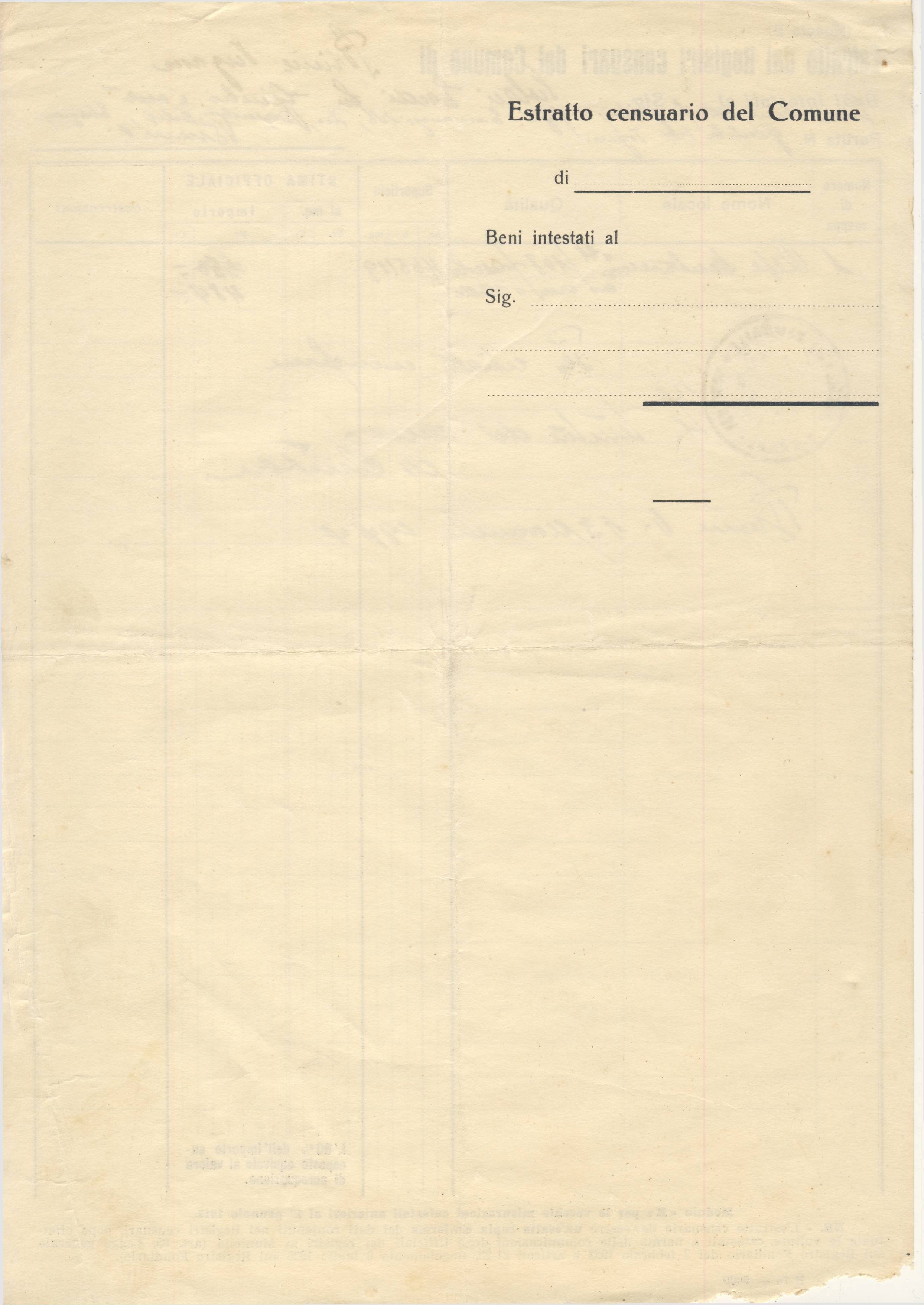 NB. - L'estratto censuario dev’essere un'esatta copia conforme dei dati contenuti nei Registri censuari, dopo effettuate le volture catastali a norma delle comunicazioni degli Ufficiali dei registri ai Municipi (art. 25, Legge generale sul Registro Fondiario del 2 febbraio 1933 e articoli 21-23, Regolamento 9 luglio 1935 sul Registro Fondiario .