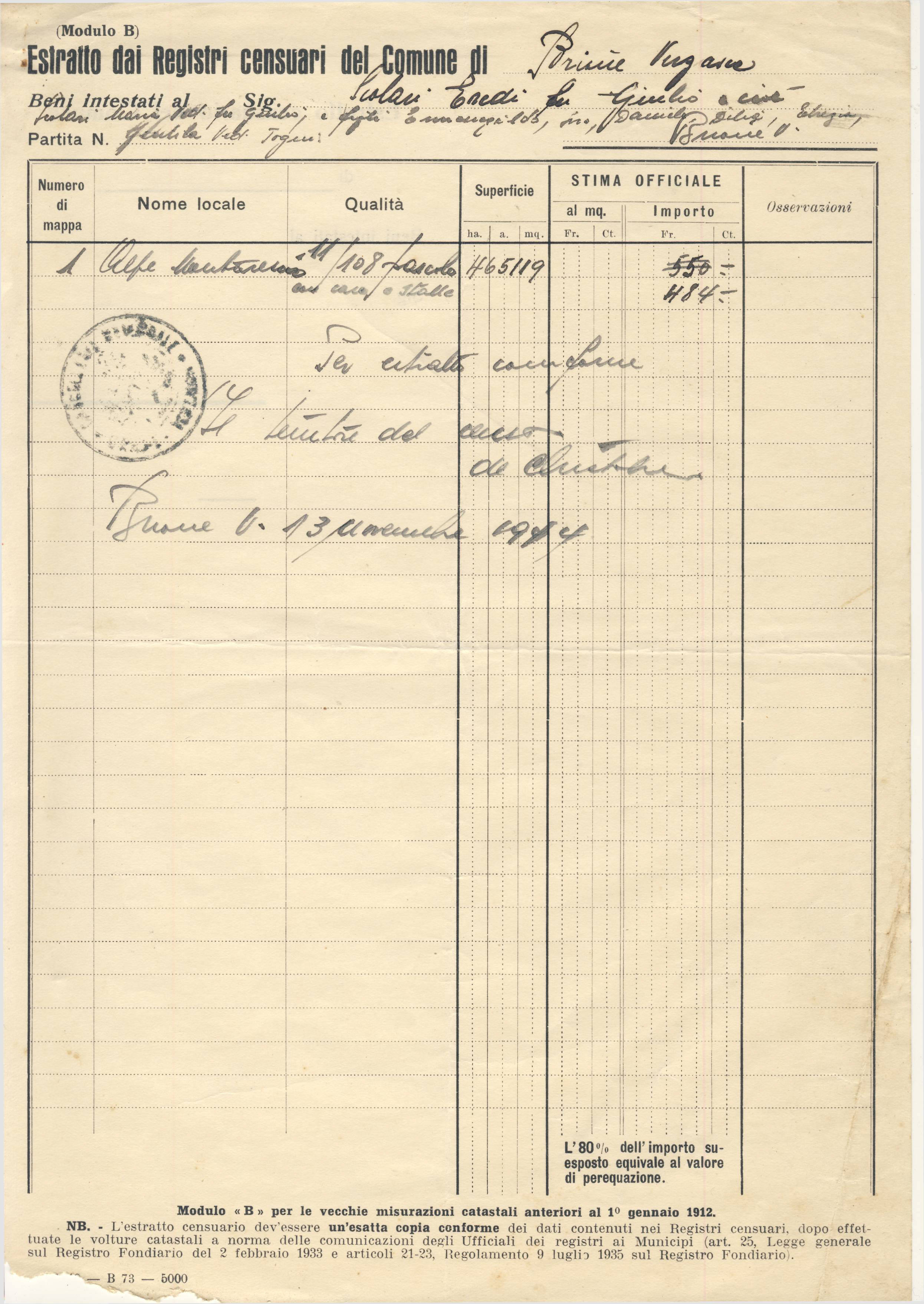 Estratto dai Registri censuari del Comune di Brione Verzasca