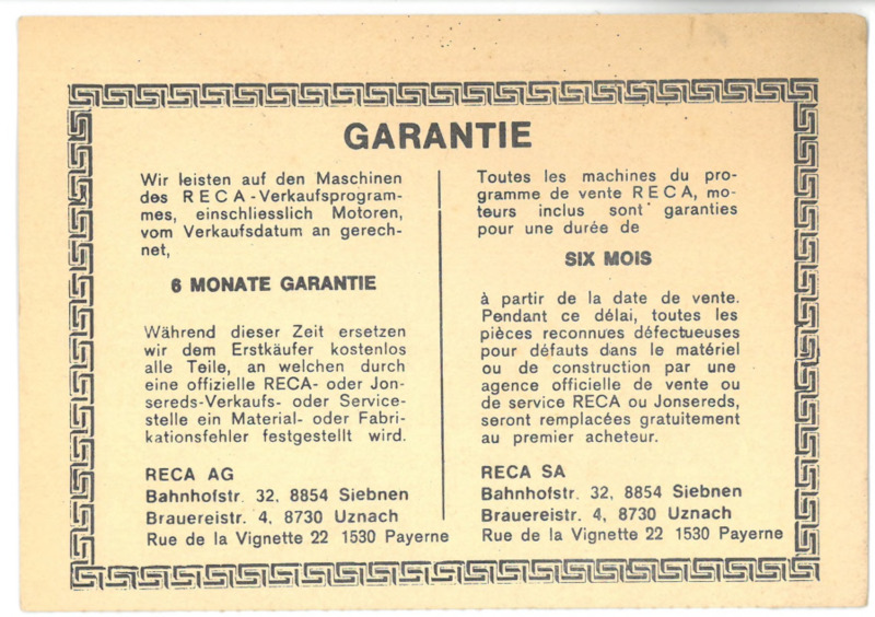 - Cartolina di garanzia per l'acquisto di un macchinario