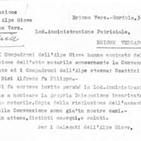 I Compadroni dell'Alpe Giove hanno nominato delegati per la stipulazione dell’atto notarile concernente la Convenzione fra il Patriziato ed i Compadroni dell’Alpe stessa: Scattini Cesare di Giovanni e Bisi Alfredo fu Filippo.-