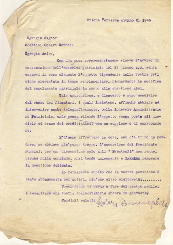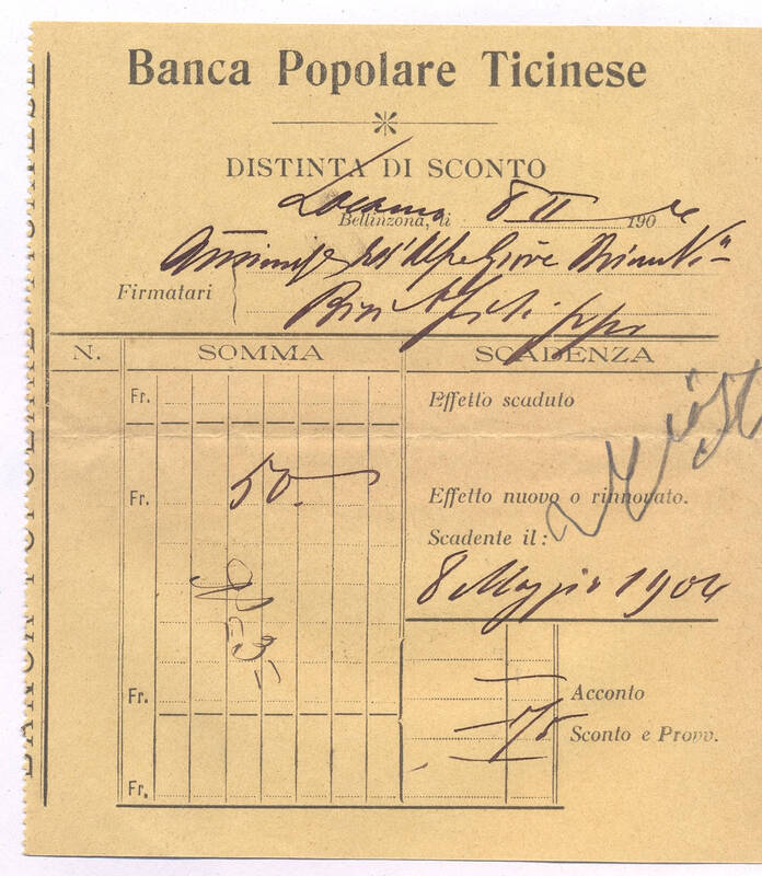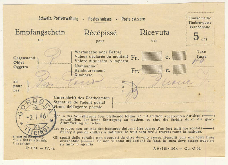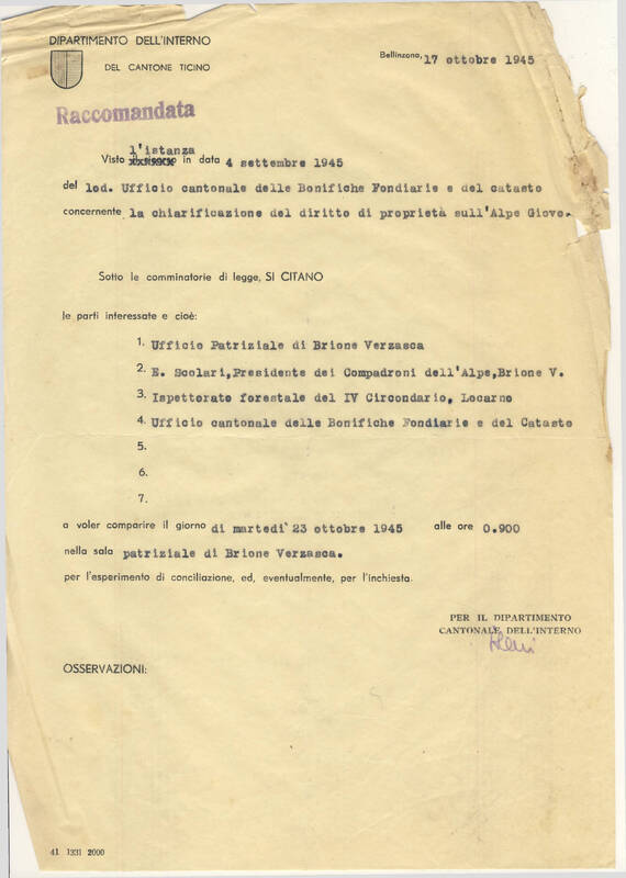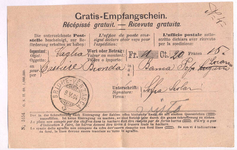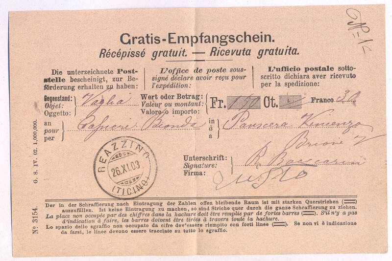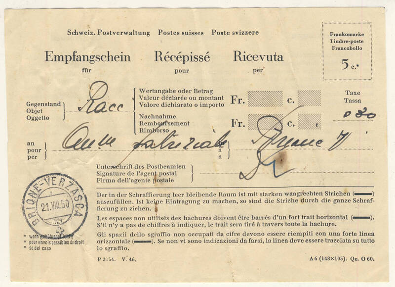 Ricevuta Raccomandata per il patriziato di Brione