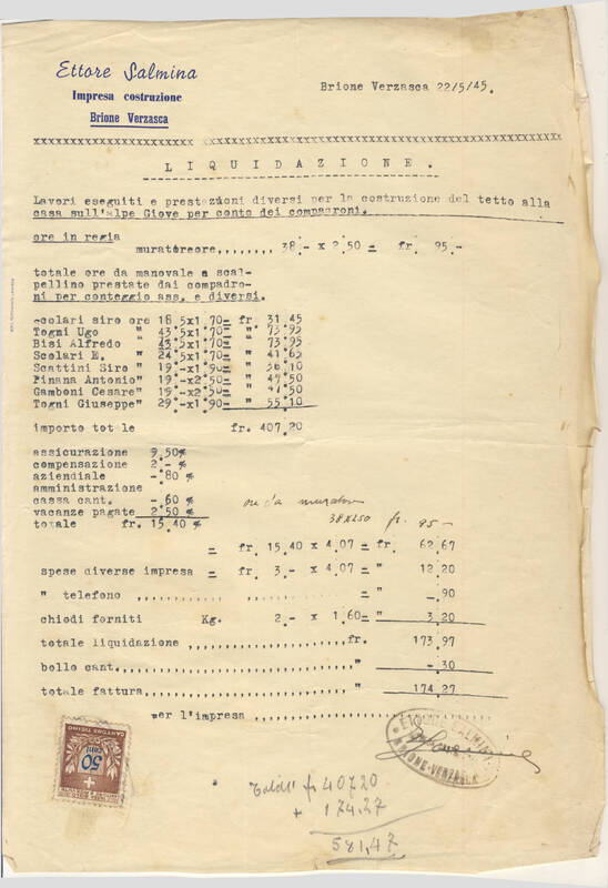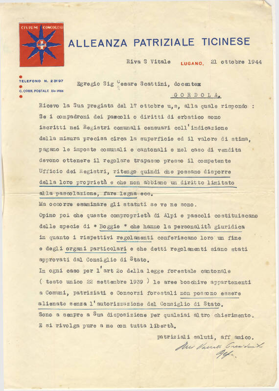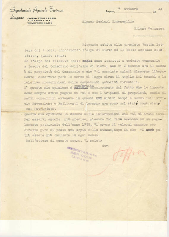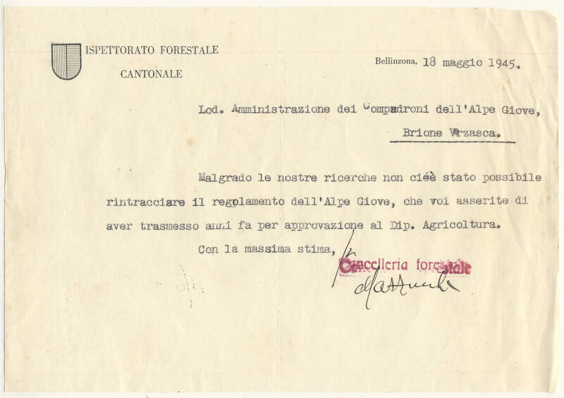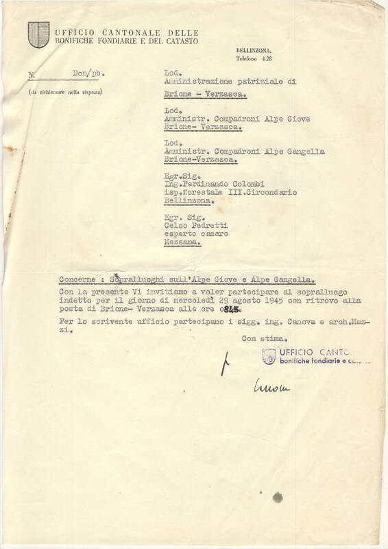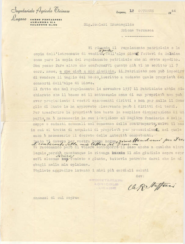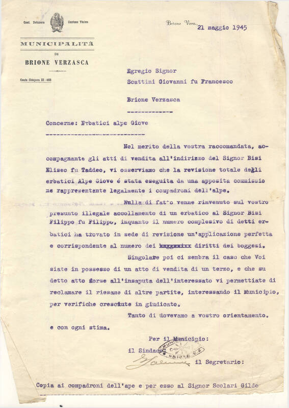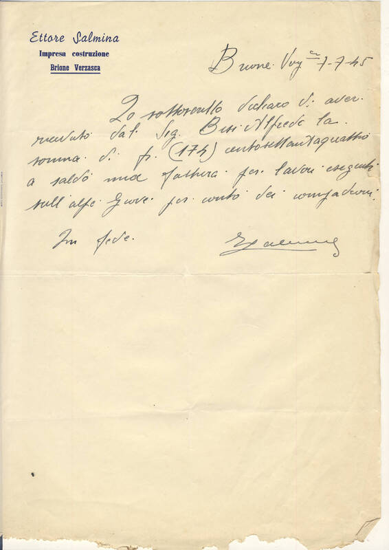 Ricevuta Raccomandata per il patriziato di Brione