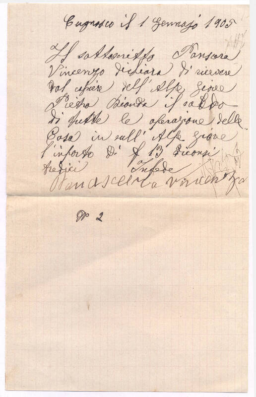 N. 2 Ricevuta Vincenzo Panscera