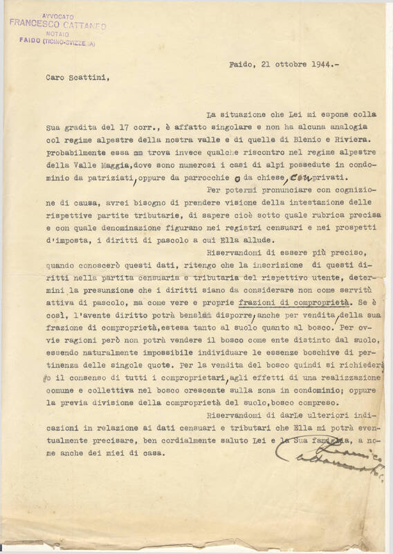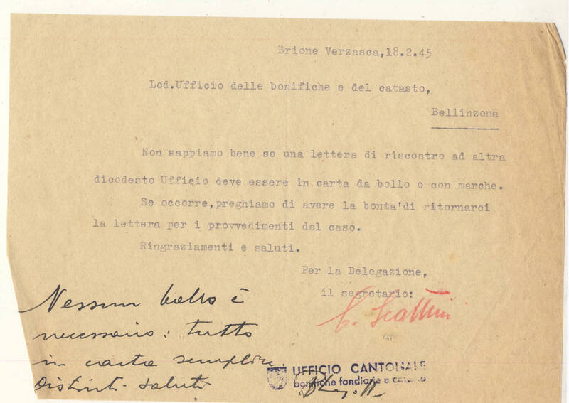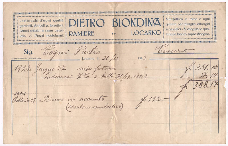Al Sig. Pietro Bionda Cugnasco