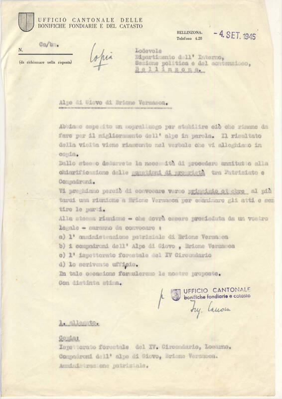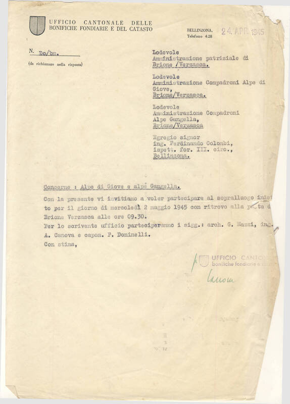 Concerne : Sopralluoghi sull’Alpe Giove e Alpe Gangella