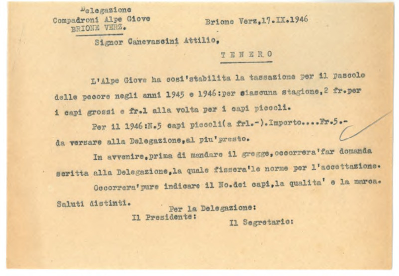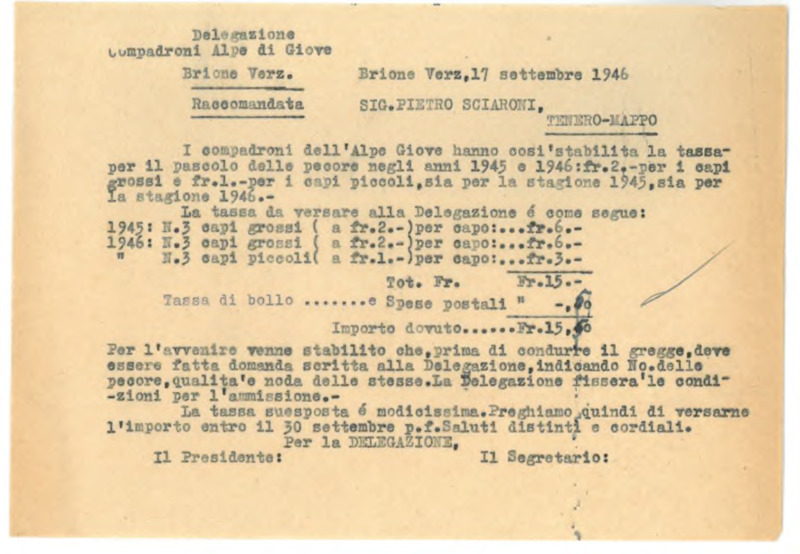 L’Alpe Giove ha cosi’ stabilito la tassazione per il pascolo