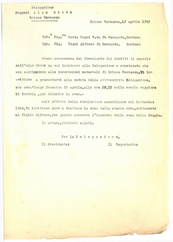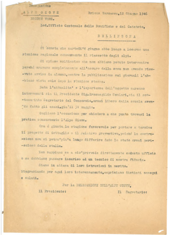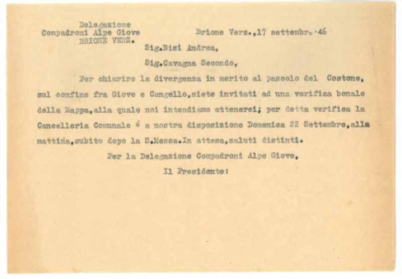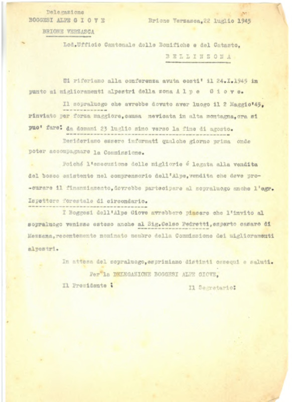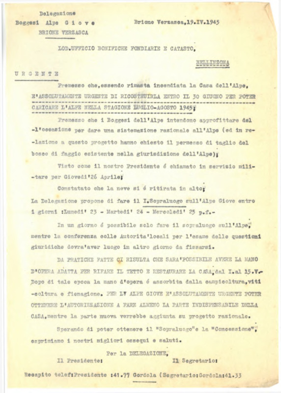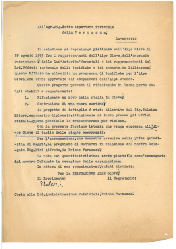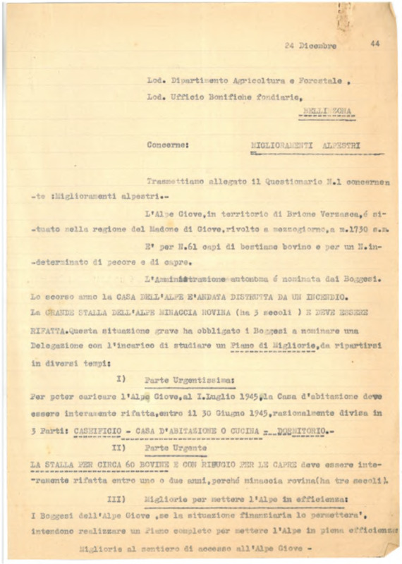 Ci riferiamo alla conferenza avuta costi’ il 24.1.1945 in punto ai miglioramenti alpestri