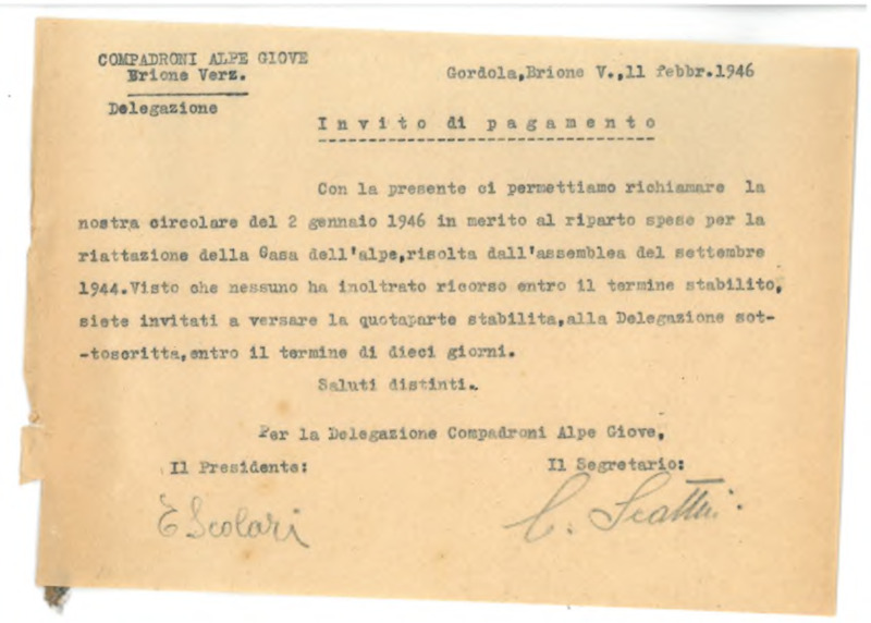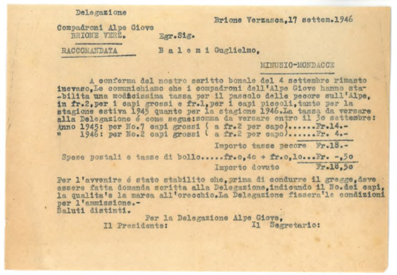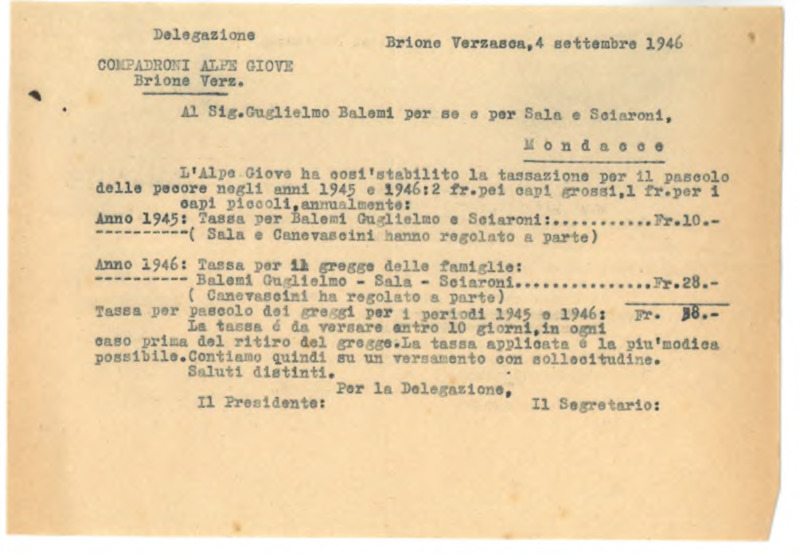 I compadroni dell'Alpe Giove hanno cosi' stabilita la tassa