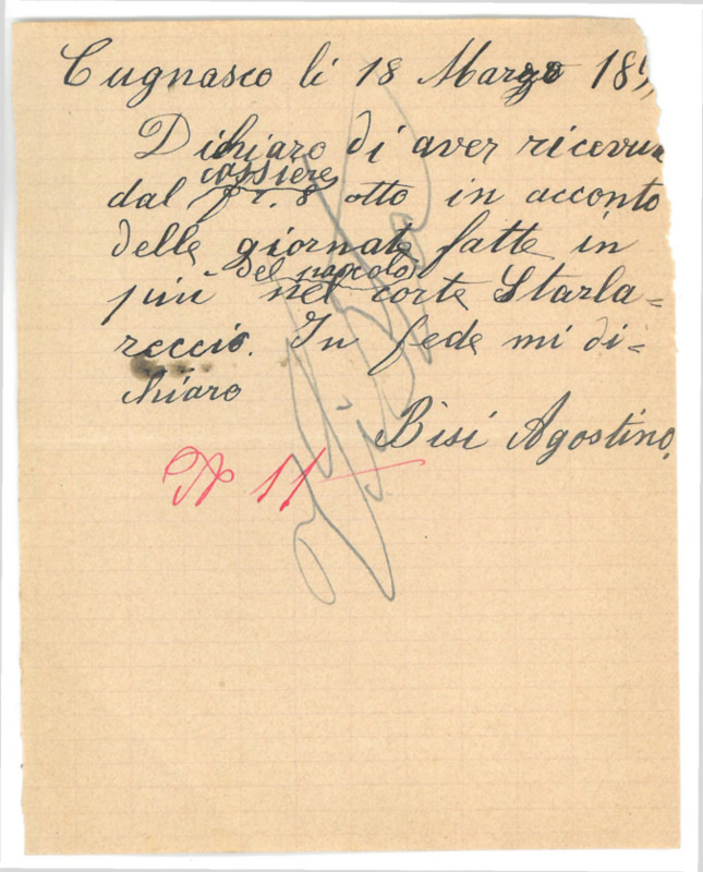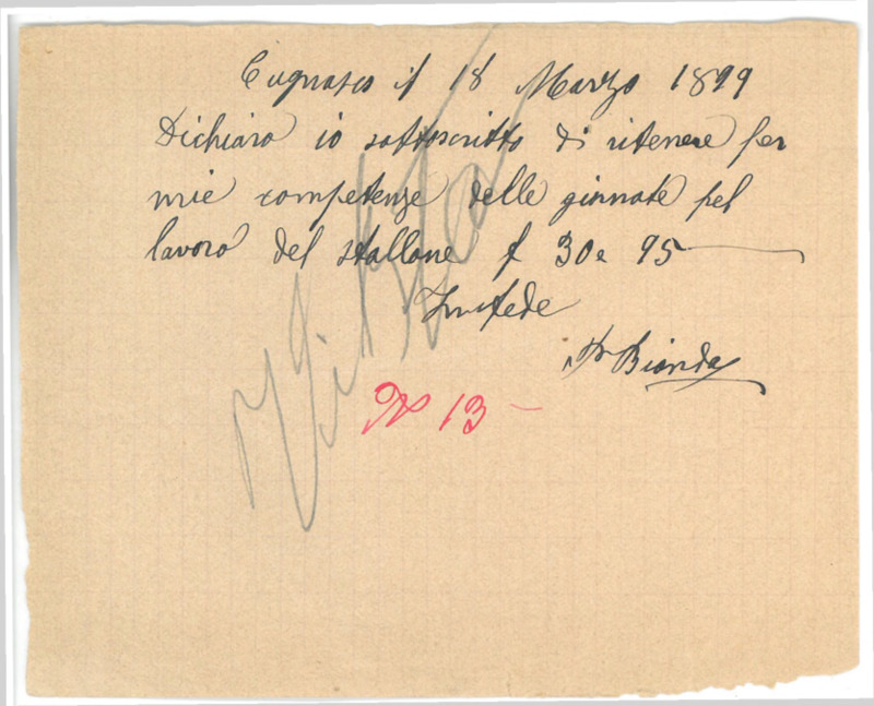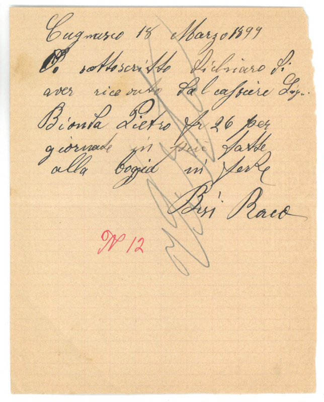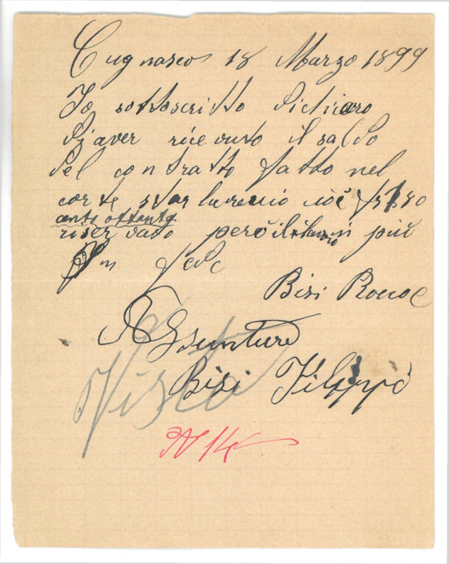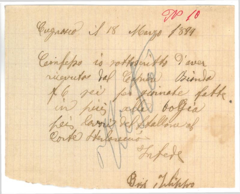 Libro delle ricevute: da n. 1 a n. 71, poi 10 senza numero. In seguito un centinaio di ricevute non utilizzate.