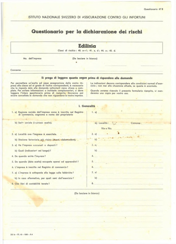 Trasmettiamo allegato il Questionarlo N. 1 concernente : Miglioramenti alpestri
