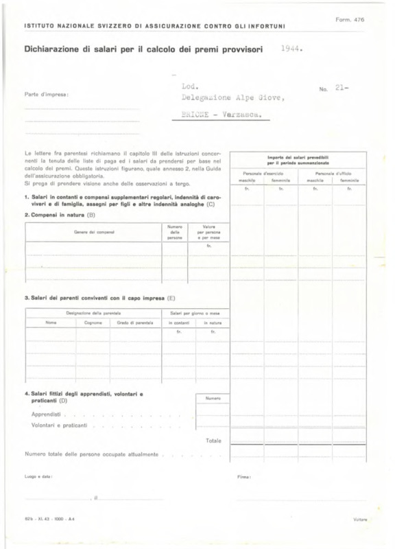 Dichiarazione di salari per il calcolo dei premi provvisori