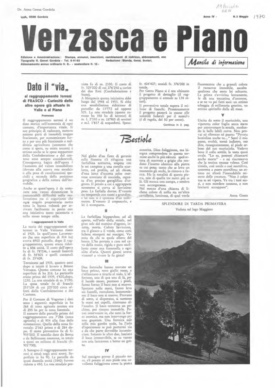 Verzasca e Piano : mensile di informazione, anno IV, n. 05, maggio1970