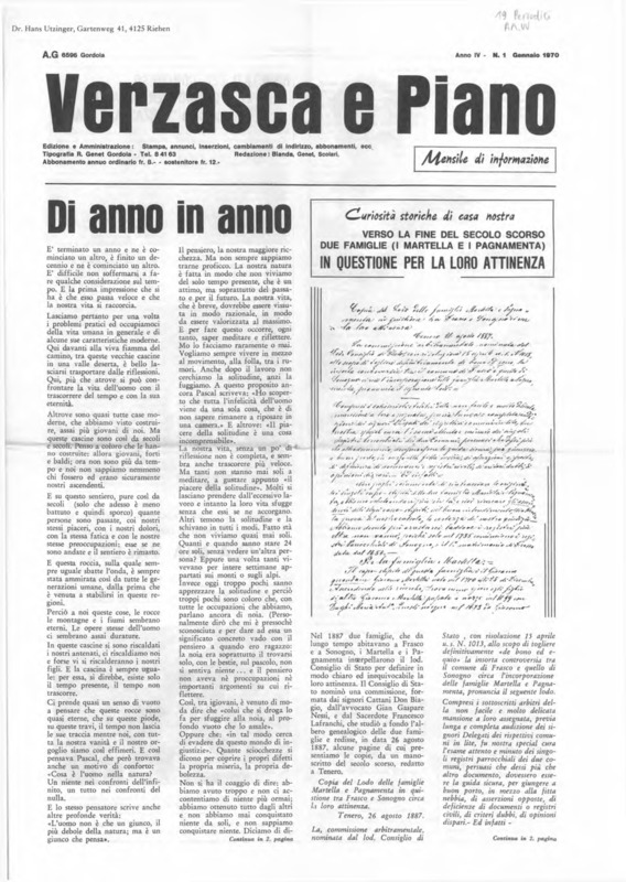 Verzasca e Piano : mensile di informazione, anno IV, n. 01, gennaio 1970