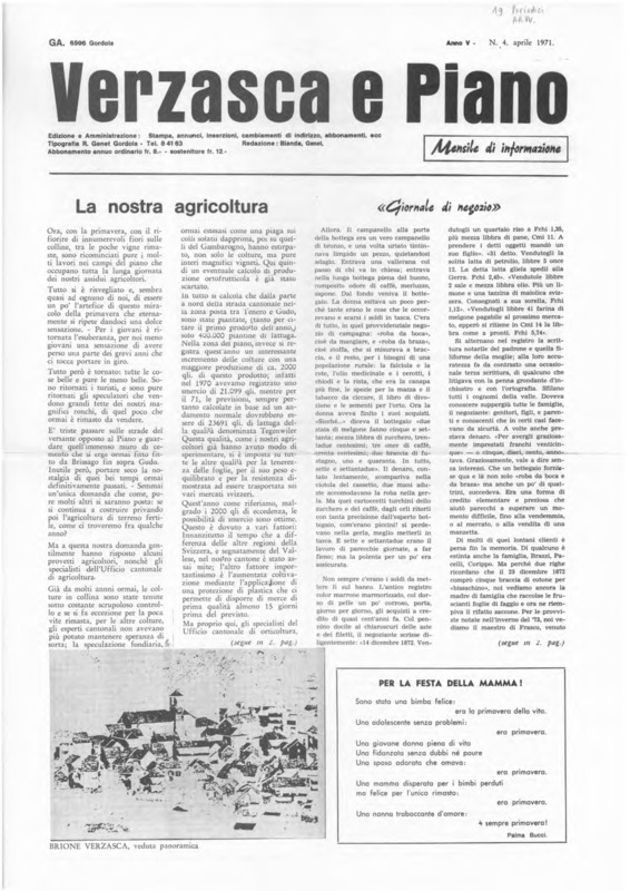 Verzasca e Piano : mensile di informazione, anno V, n. 04, aprile 1971