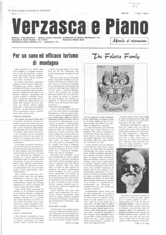 Verzasca e Piano : mensile di informazione, anno IV, n. 07, luglio agosto 1970