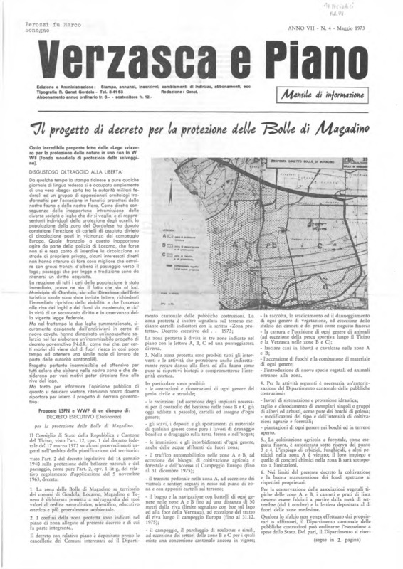 Verzasca e Piano : mensile di informazione, anno VII, n. 04, maggio 1973