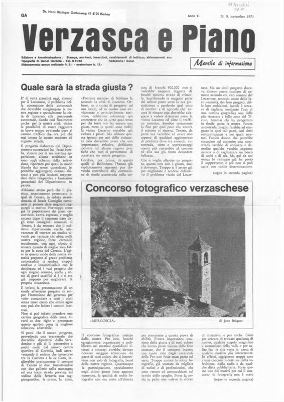Verzasca e Piano : mensile di informazione, anno V, n. 09, novembre 1971