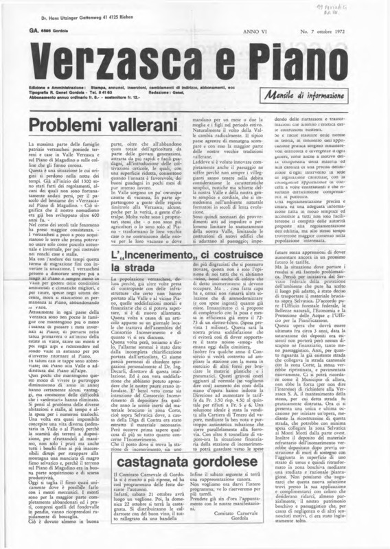 Verzasca e Piano : mensile di informazione, anno VI, n. 07, ottobre 1972