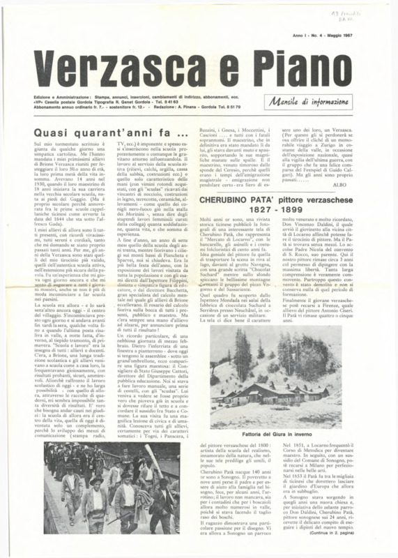 Verzasca e Piano : mensile di informazione, anno I, n. 04, maggio 1967