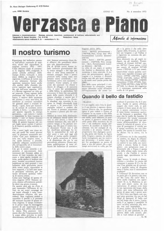 Verzasca e Piano : mensile di informazione, anno VI, n. 06, settembre 1972