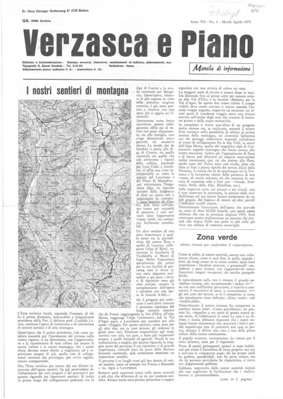 Verzasca e Piano : mensile di informazione, anno VII, n. 03, marzo aprile 1973